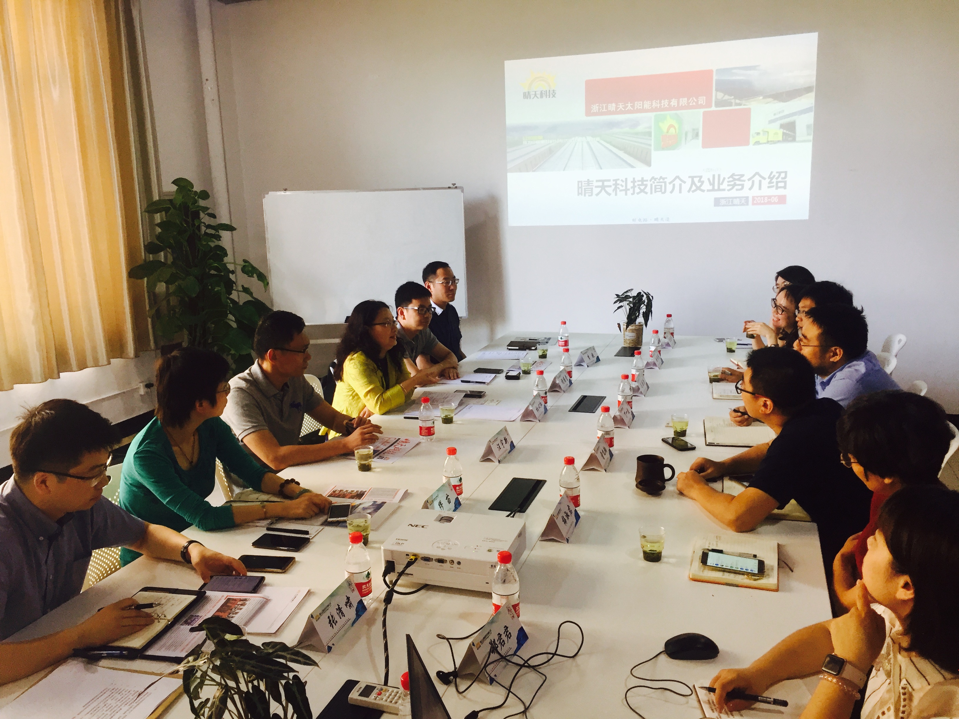 晴天科技繼獲申能(集團)有限公司旗下新能源產(chǎn)業(yè)基金誠毅投資公司入資后,再次迎接申能財務(wù)公司的深度調(diào)研與溝通。