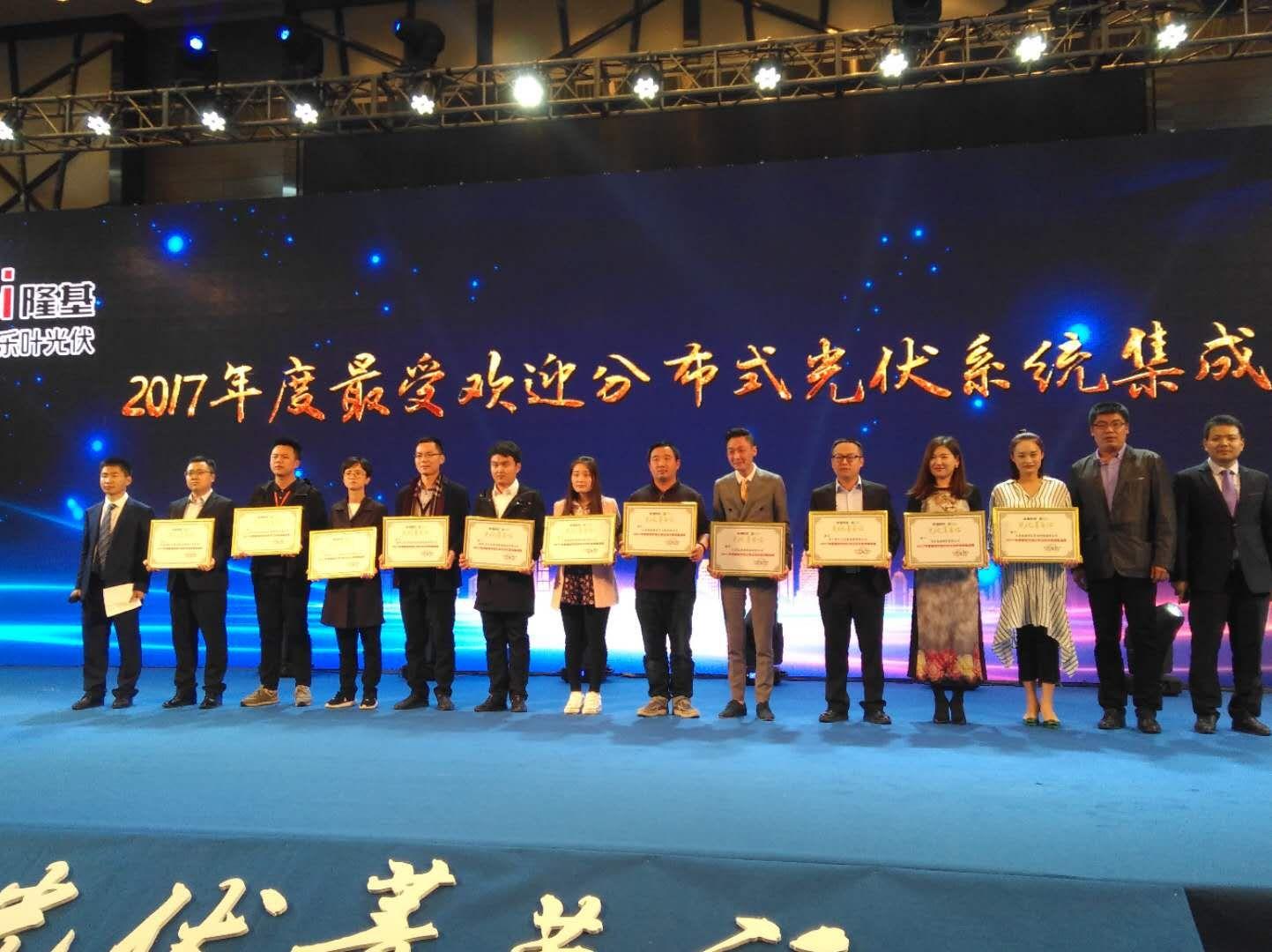 晴天科技憑借創新技術與可靠服務品質榮膺“2017年度最受歡迎分布式光伏系統集成商”。