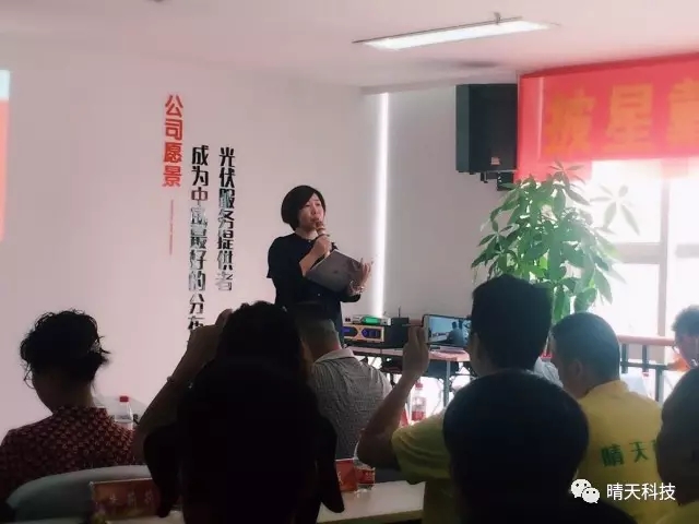 最后浙江晴天太陽(yáng)能科技有限公司溫州分公司經(jīng)理室作未來(lái)展望。“披星戴月,拿下雙百”,相信溫州分公司在各級(jí)領(lǐng)導(dǎo)的關(guān)懷下,在分公司各位員工的努力下,晴天科技太陽(yáng)能電站之花將會(huì)迅速在溫州大地上怒放!